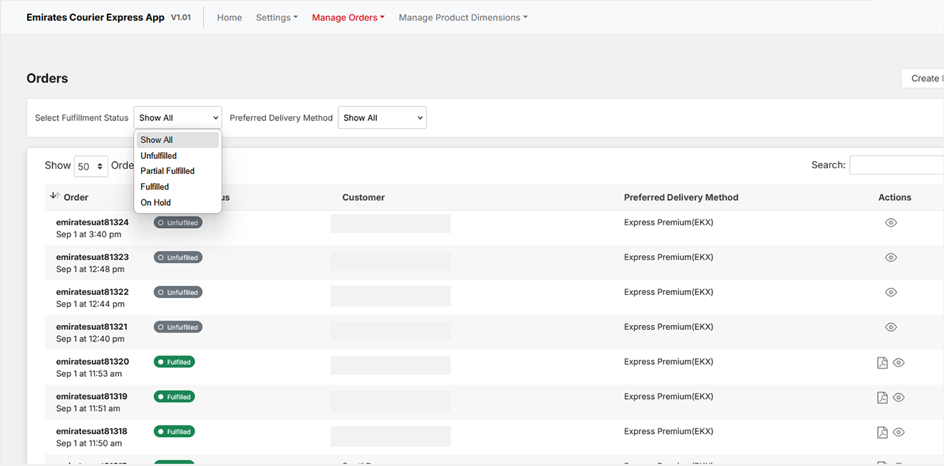 You can also search orders by Unfulfilled, Partially Fulfilled , Fulfilled or by Delivery Method.
