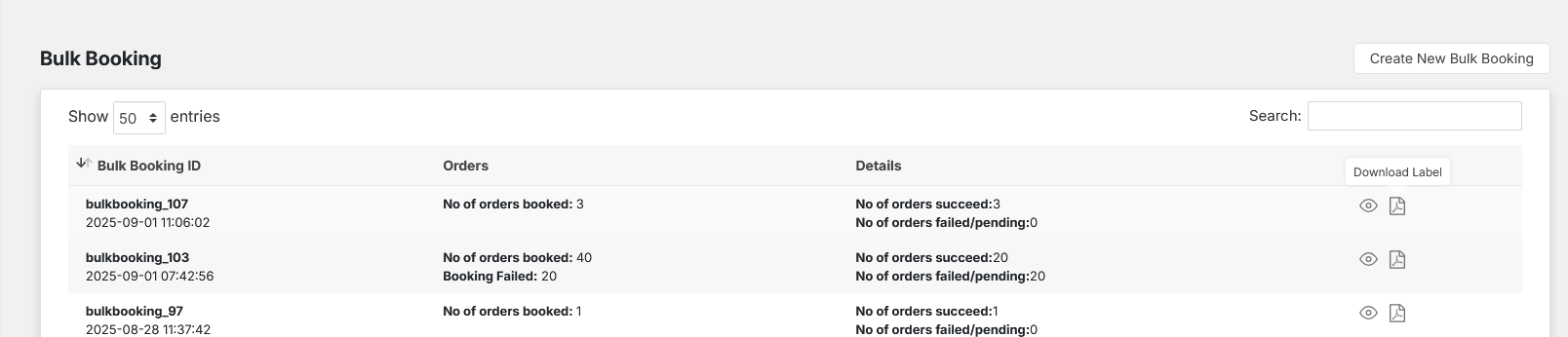 After clicking the book button it will be redirected to a page where you can see the included orders are being booked one by one. And finally you can see that it is completed and the link for download merged label and pickup summary or manifest is supplied.