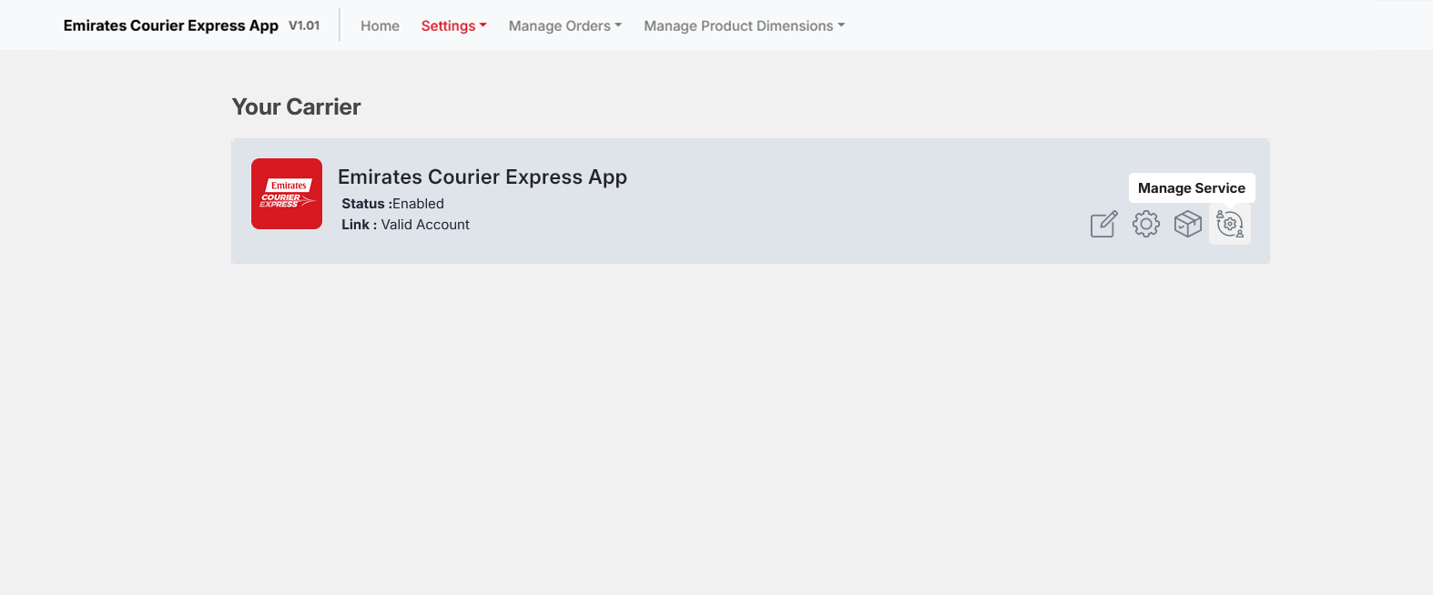 You will see your Manage Service options in the Emirates Courier Express App matches your rates available in your checkout.