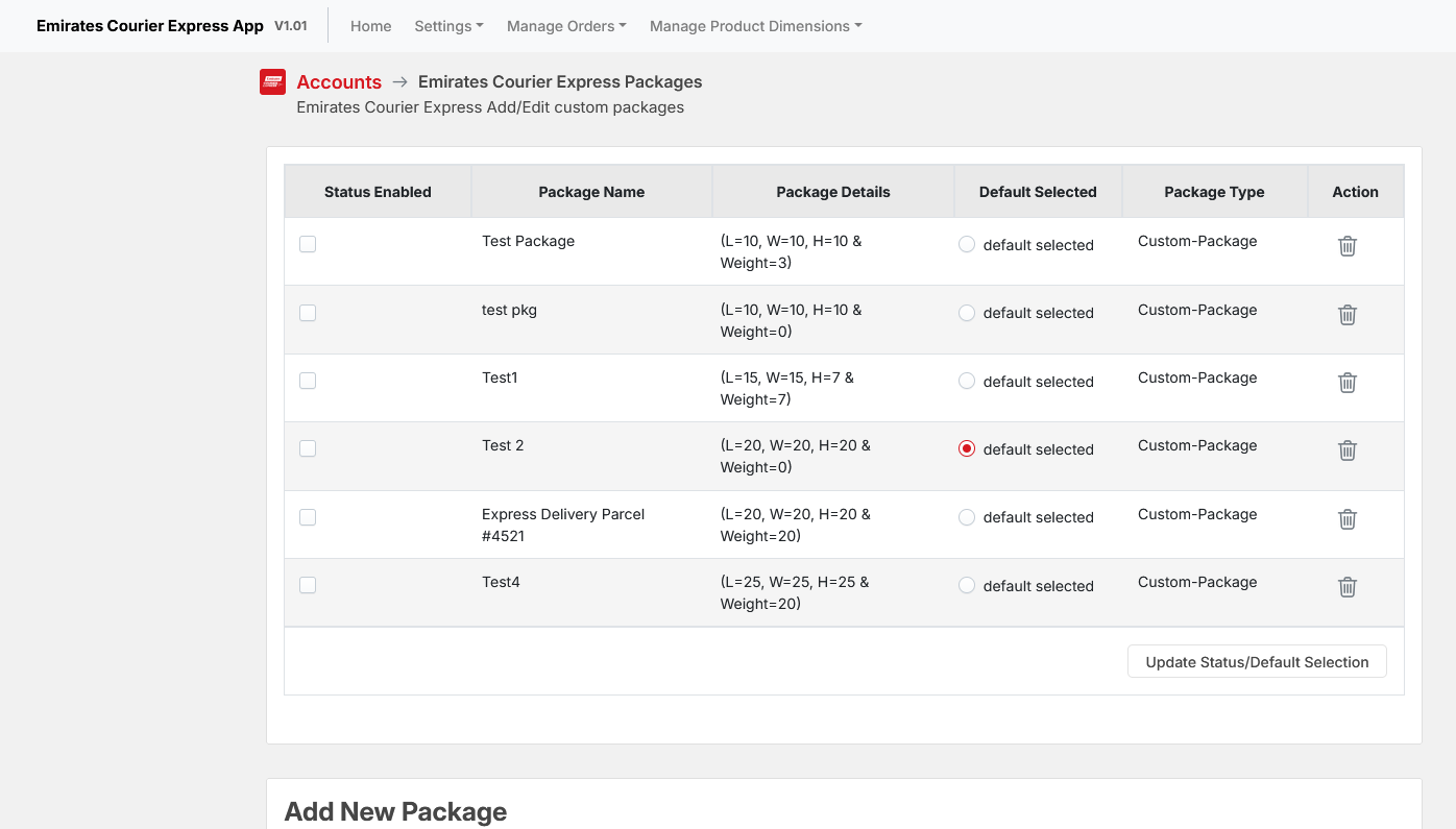 One of the most useful features in the Emirates Courier Express App is the ability to add custom package sizes, ensuring accurate shipping quotes and optimised logistics for your products.